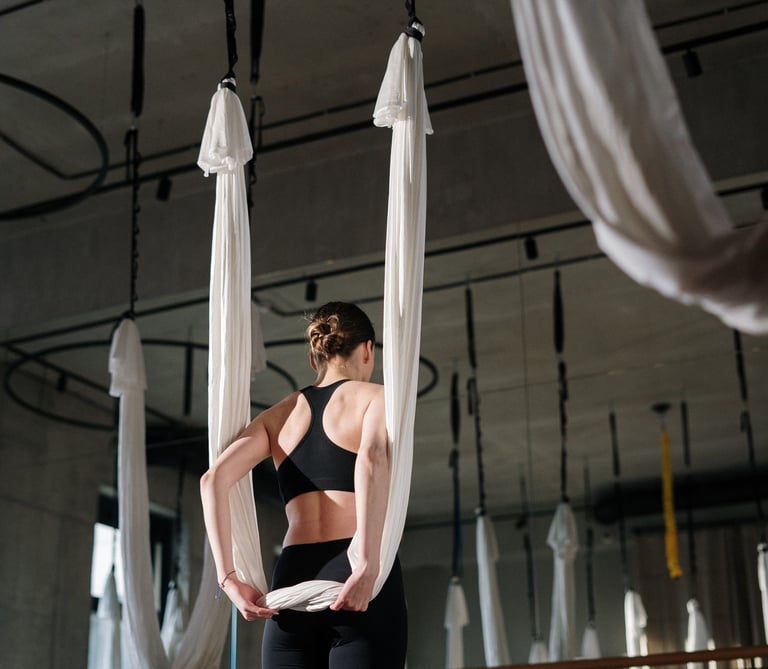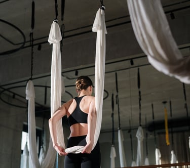 Air yoga is an interdisciplinary workout that combines the flexibility and technique of regular yoga with the strength building of hanging. Whether you’ve tried air yoga before or are a total beginner, you’re welcome in our classes.